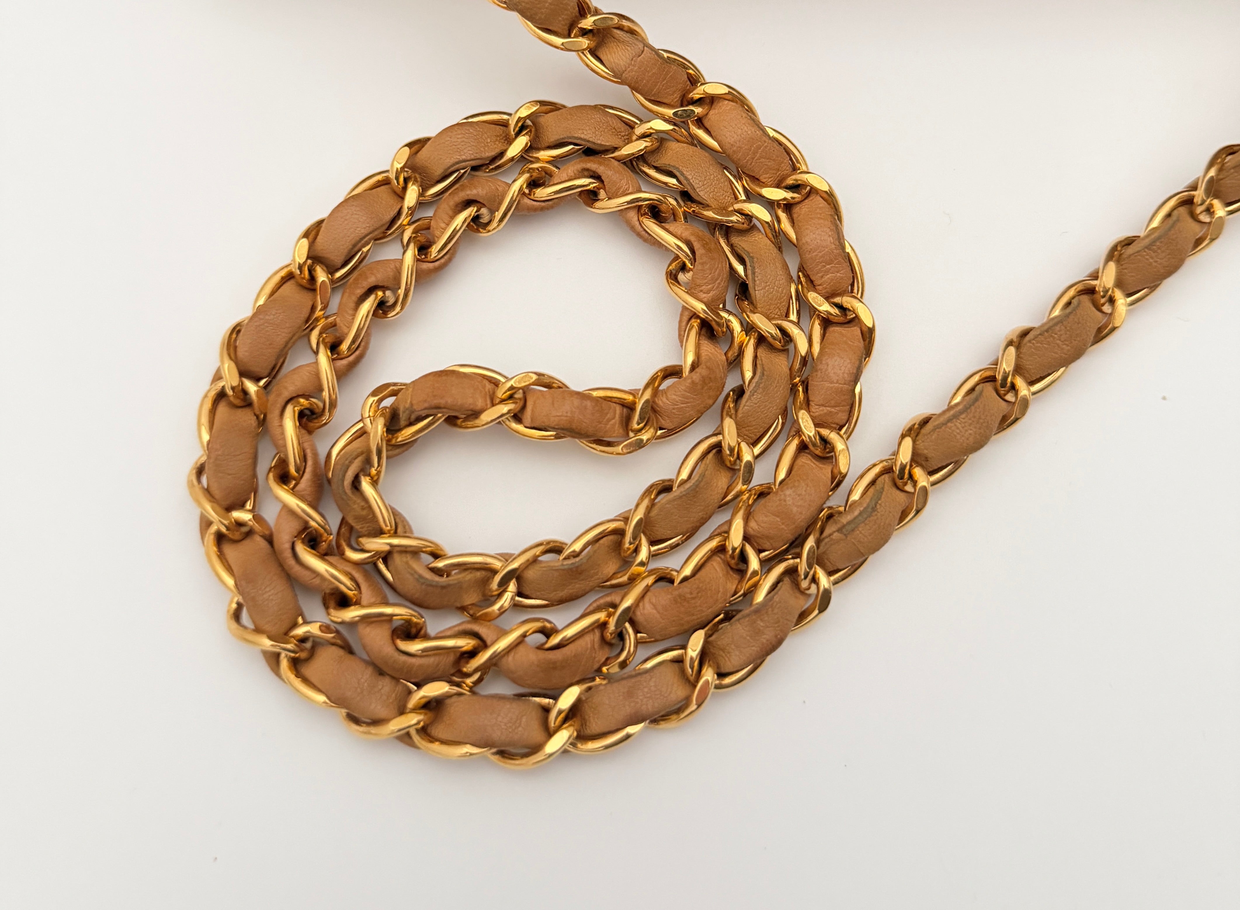 Chain: General signs of use, mainly on the leather part of the chain, light wear and some stains, overall good condition.
