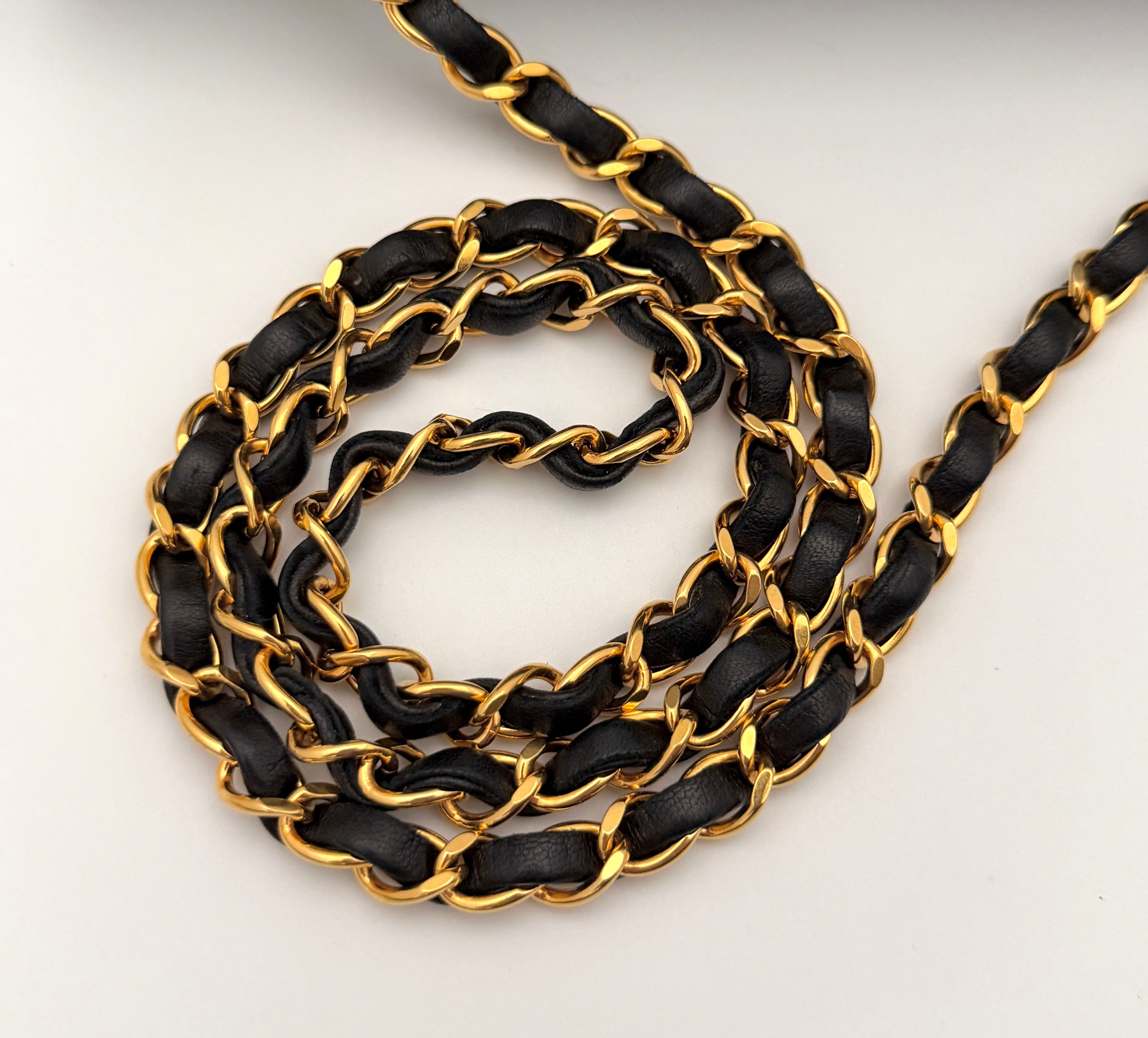 Leather: Slight wrinkles and marks from the chain, slight color touch-up, slight signs of use overall, very well preserved.