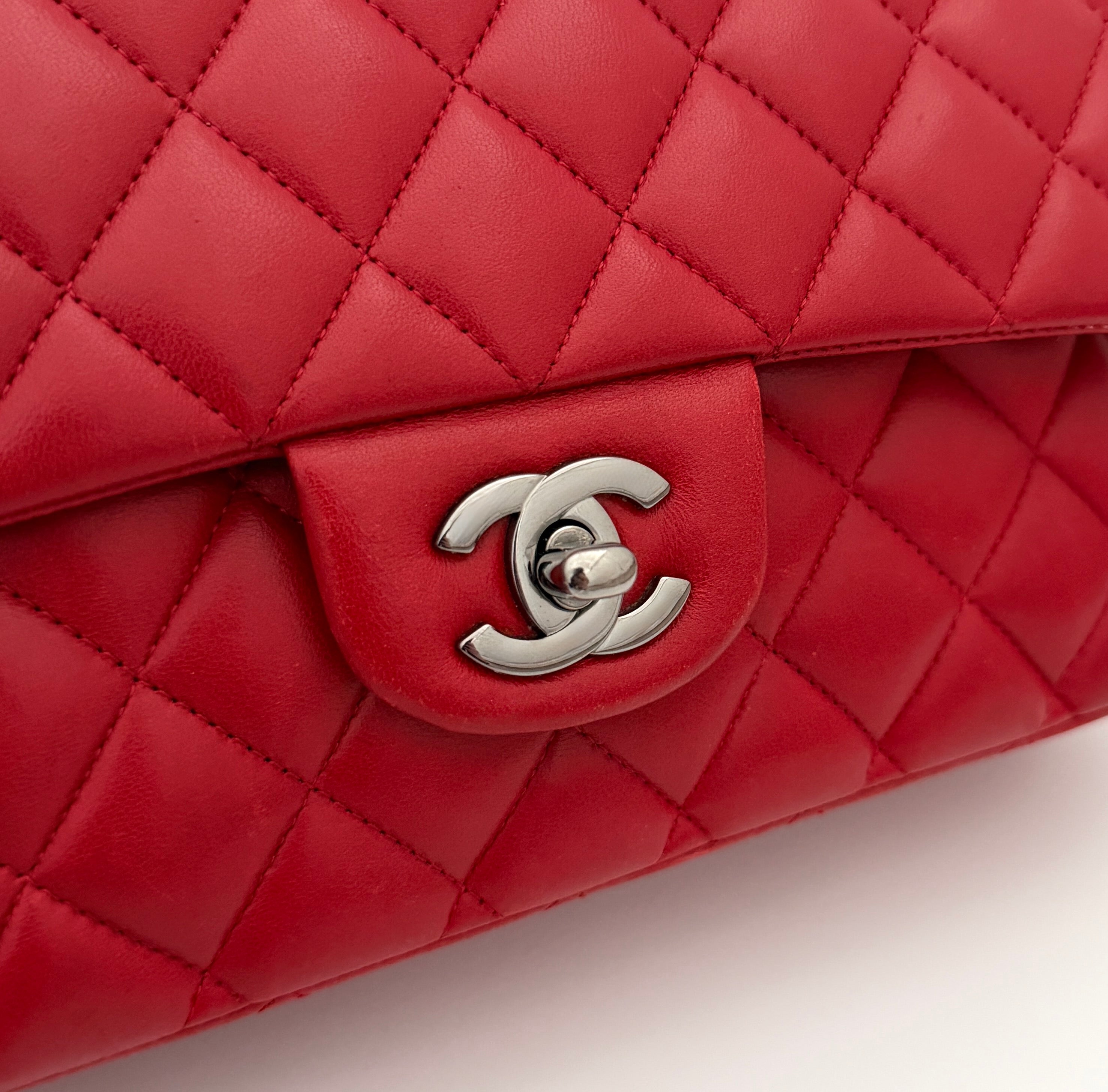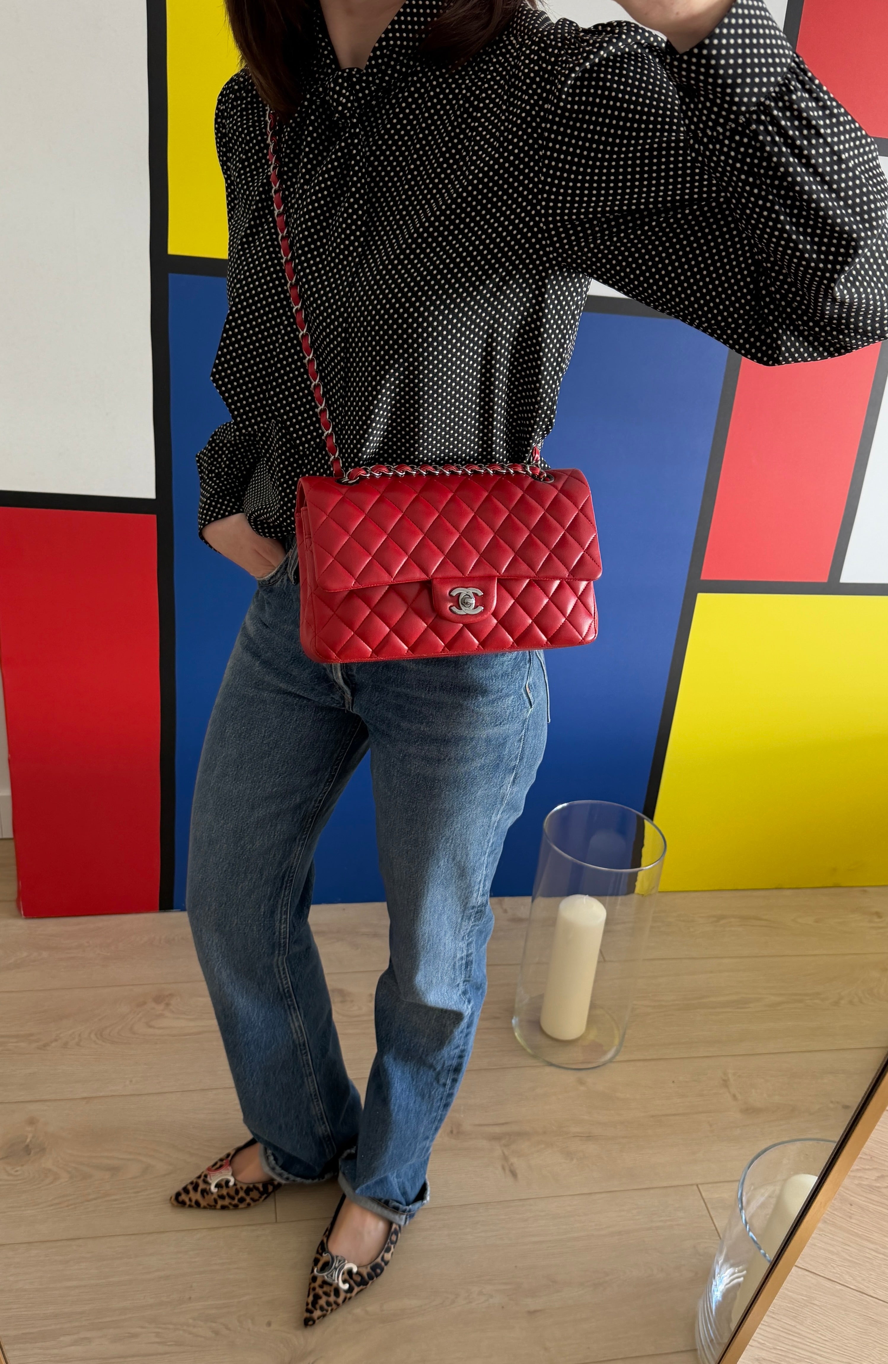 Chanel Timeless 25 Double Flap red lambskin vintage classic flap bag