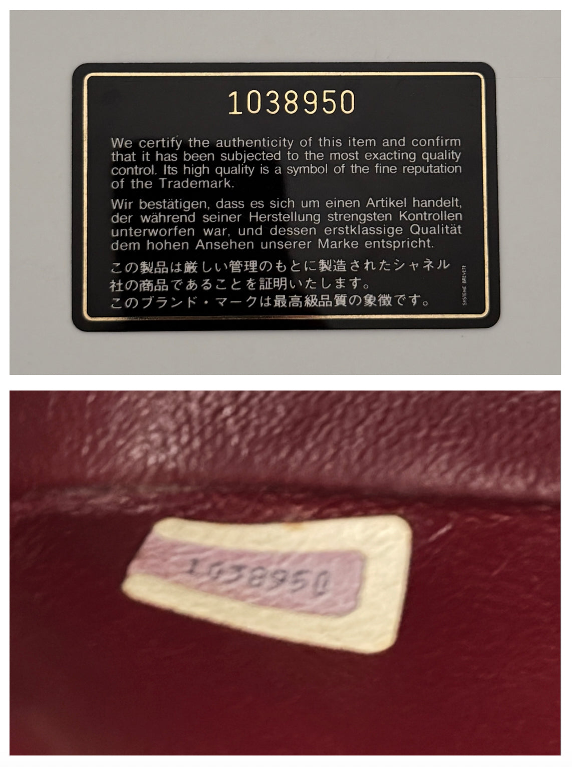 Includes: Sticker with serial number inside and authentication card.