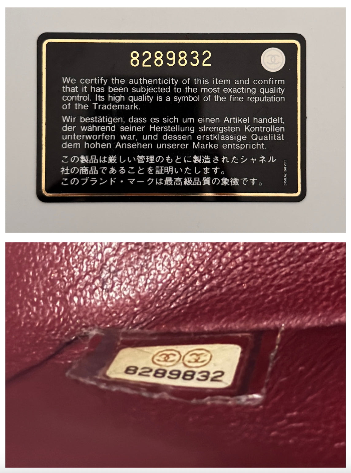 Includes: Serial number sticker inside, authenticity card, box, dust bag, and care booklet.